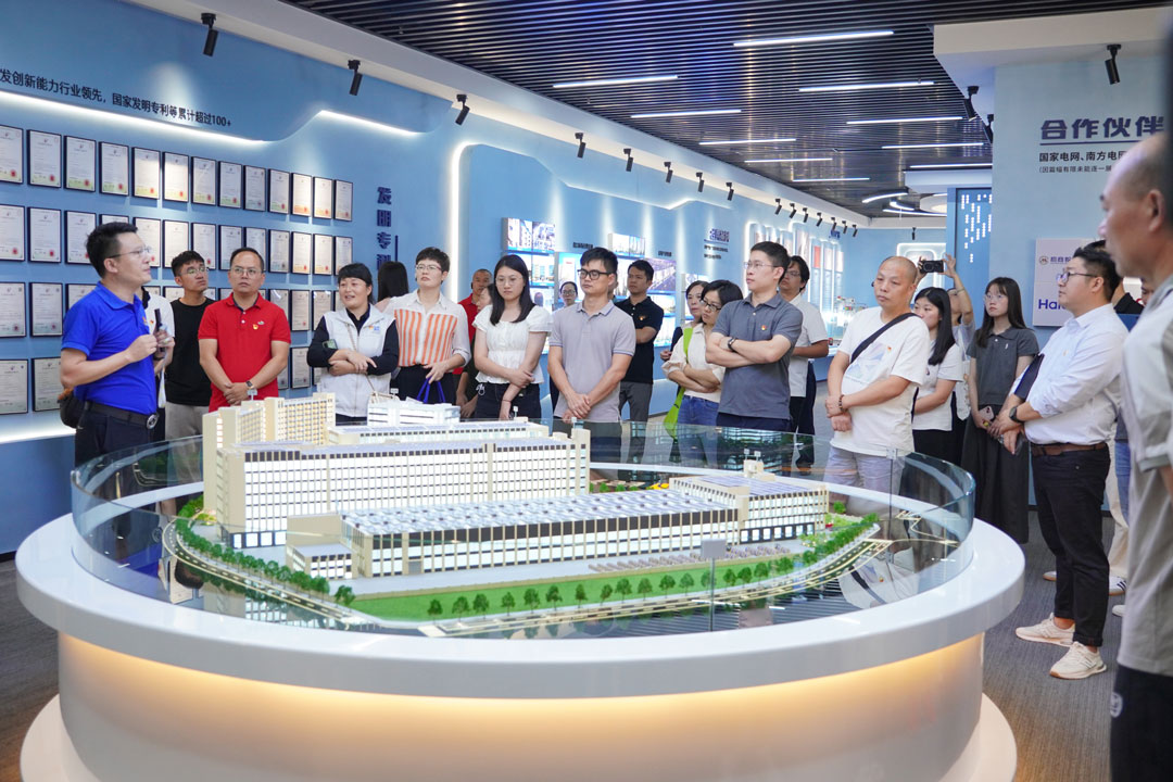 隨后,在楊彥等的陪同下,王奇一行來到民興科技展廳參觀,詳細(xì)了解企業(yè)發(fā)展歷程、產(chǎn)業(yè)布局、科技創(chuàng)新、企業(yè)文化、社會責(zé)任等。每到一處,王奇等都認(rèn)真聆聽講解、頻頻拍照記錄,在觀摩中領(lǐng)略企業(yè)獨(dú)特風(fēng)采,在深入交流中啟發(fā)創(chuàng)新思路。特別是移步至發(fā)明專利墻展示區(qū)、運(yùn)營大數(shù)據(jù)展示區(qū)時,大家紛紛對民興在科技創(chuàng)新和智能化管理等方面所取得的成就點(diǎn)贊。