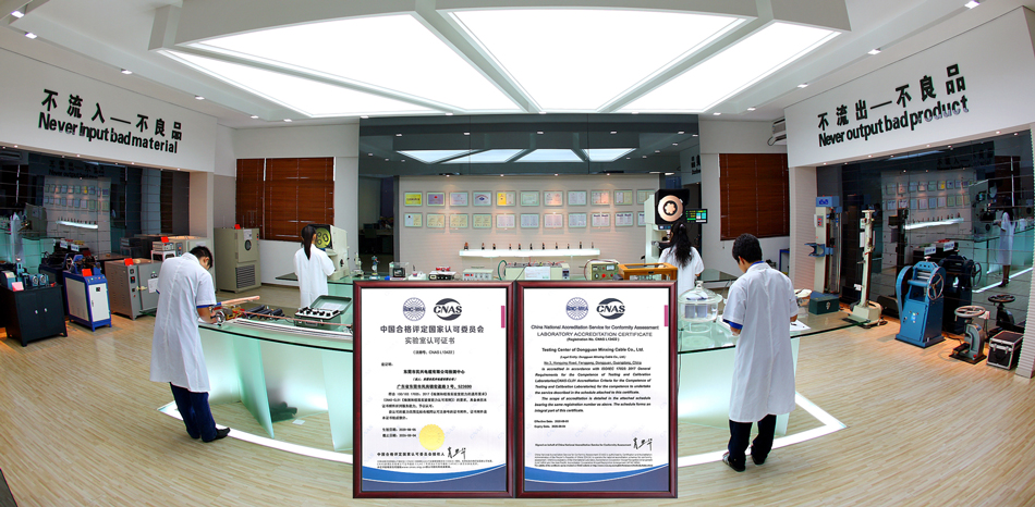 民興建立了專業(yè)的電線電纜檢測中心,根據(jù)國際標(biāo)準(zhǔn)ISO/IEC17025體系標(biāo)準(zhǔn)開展檢測,并且實(shí)驗(yàn)室通過了權(quán)威的國家認(rèn)可委CNAS認(rèn)證;擁有國際領(lǐng)先的檢驗(yàn)試驗(yàn)設(shè)備100多臺(套),檢驗(yàn)項(xiàng)目覆蓋所有產(chǎn)品的國家GB標(biāo)準(zhǔn)/國際IEC標(biāo)準(zhǔn)的各項(xiàng)指標(biāo),可以對產(chǎn)品電氣性能、機(jī)械性能、高溫性能、低溫性能、燃燒性能等進(jìn)行全面檢測;建立了全流程的檢驗(yàn)控制體系,覆蓋原材料檢測、半成品檢測、成品檢測三大環(huán)節(jié),有效控制產(chǎn)品質(zhì)量,確保實(shí)現(xiàn)“不流入不良品、不流出不良品”的質(zhì)量目標(biāo)。