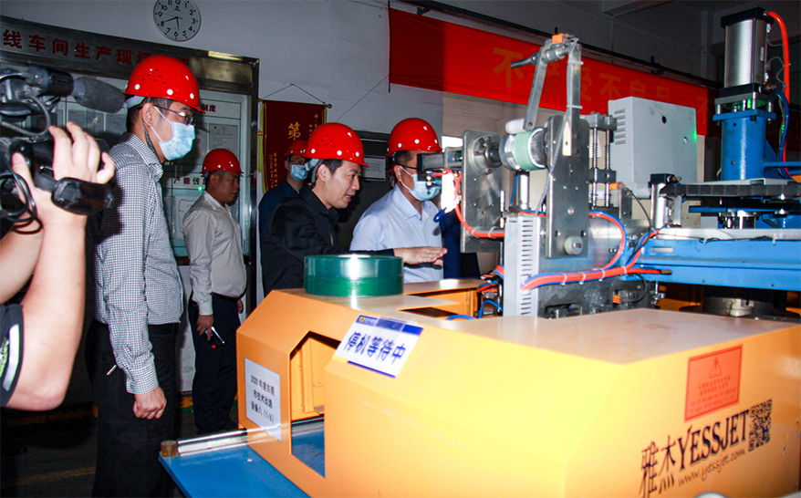 楊總向張耀洪等介紹自動化電線生產(chǎn)設(shè)備