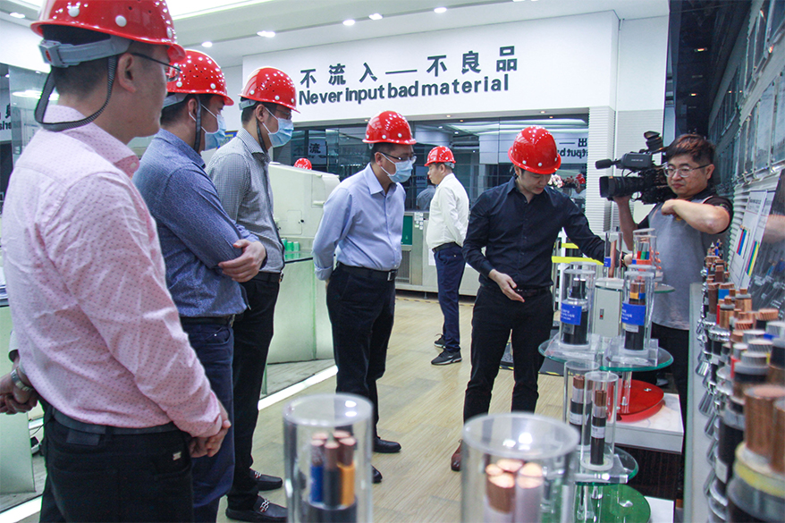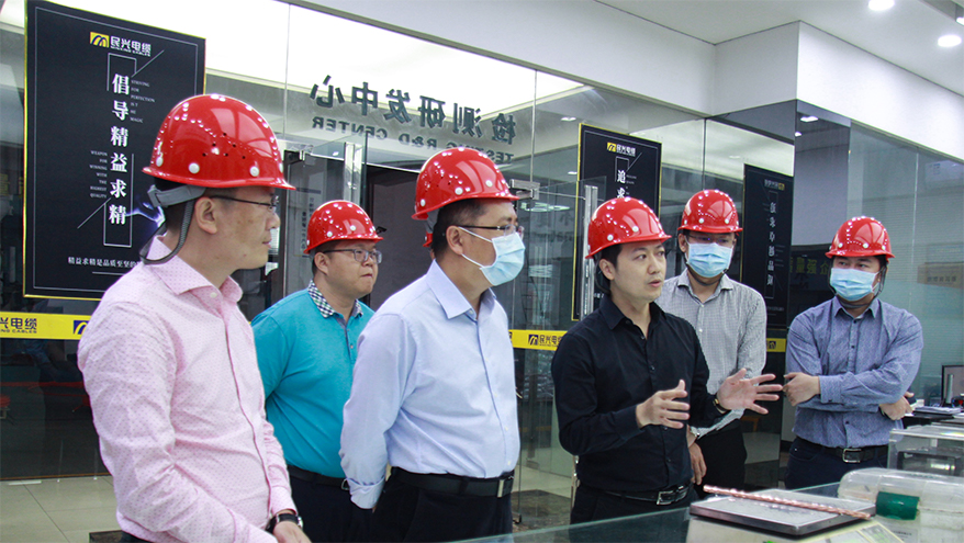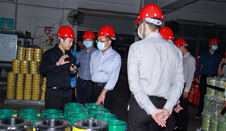 隨后,一行人又分別走訪了拉絲生產(chǎn)車間、檢測研發(fā)中心、交聯(lián)機生產(chǎn)車間等。調(diào)研中,楊總詳細(xì)匯報了企業(yè)在疫情影響之下努力克服不利因素,全力以赴抓生產(chǎn)經(jīng)營,促進企業(yè)安全生產(chǎn)等方面所做的工作;同時介紹了民興電纜最新研發(fā)的礦物絕緣防火電纜新品、生產(chǎn)技術(shù)、功能特性及市場前景等。