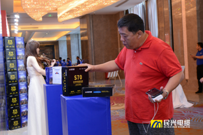 伴隨著激動人心的音樂,在大家的共同見證下,“匠心聚力·耀世啟航”,民興電纜E40高阻燃家裝電線和S70長壽命家裝電線正式面向全球隆重上市!