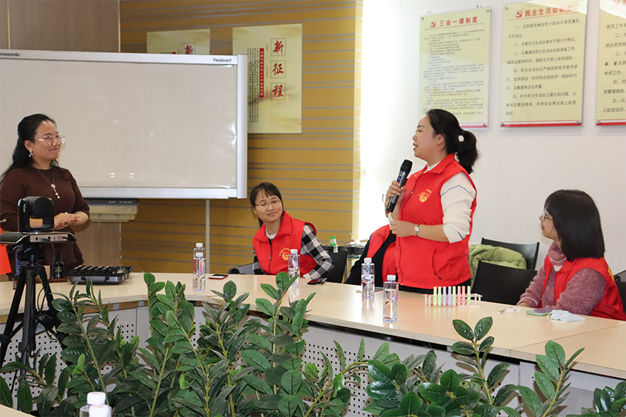 在接下來進行的環(huán)節(jié)中,植物精油芳療師樸然老師帶領(lǐng)志愿者們進行芳香療法的體驗活動和冬季愛心DIY手作活動。樸然老師通過文字講解結(jié)合現(xiàn)場互動的方式,介紹了芳香療法的起源和功效,并為志愿者們分發(fā)了純天然植物精油,配合呼吸法和按摩法,給志愿者們帶來身心的放松和情緒的舒緩。隨后還進行了天然精油唇膏DIY手作,志愿者們被分成5個小組,分工又合作。經(jīng)過加熱、融化、添加精油、裝管、冷卻成型,一支支充滿愛心的DIY唇膏就完成了?;顒幼詈螅驹刚邆冞€分享了各自的感悟和收獲。